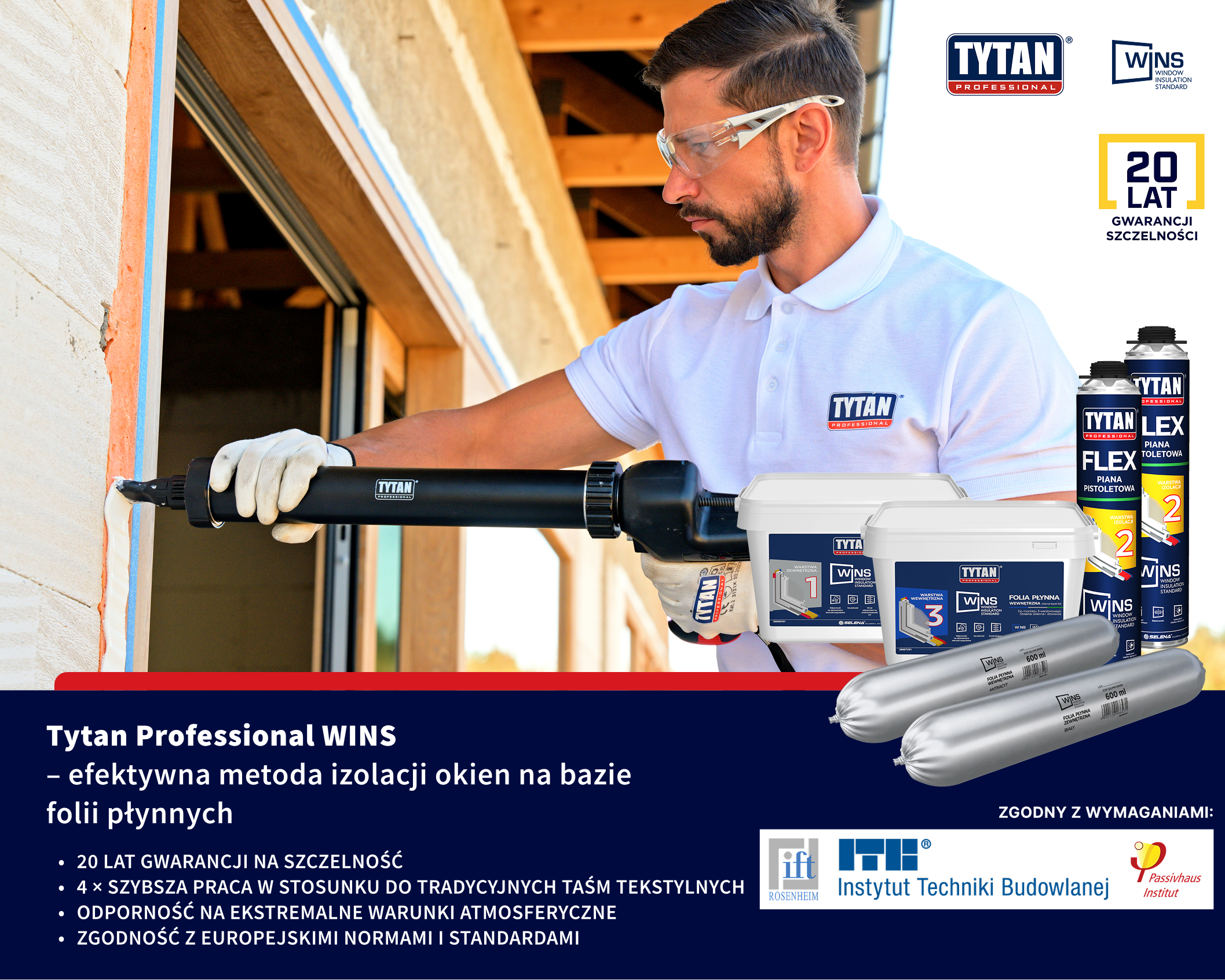 Wykonując uszczelnianie okien i drzwi w systemie TYTAN WINS, Inwestor może liczyć na bezpłatną 20 letnią gwarancję szczelności od producenta systemu, Firmy SELENA.